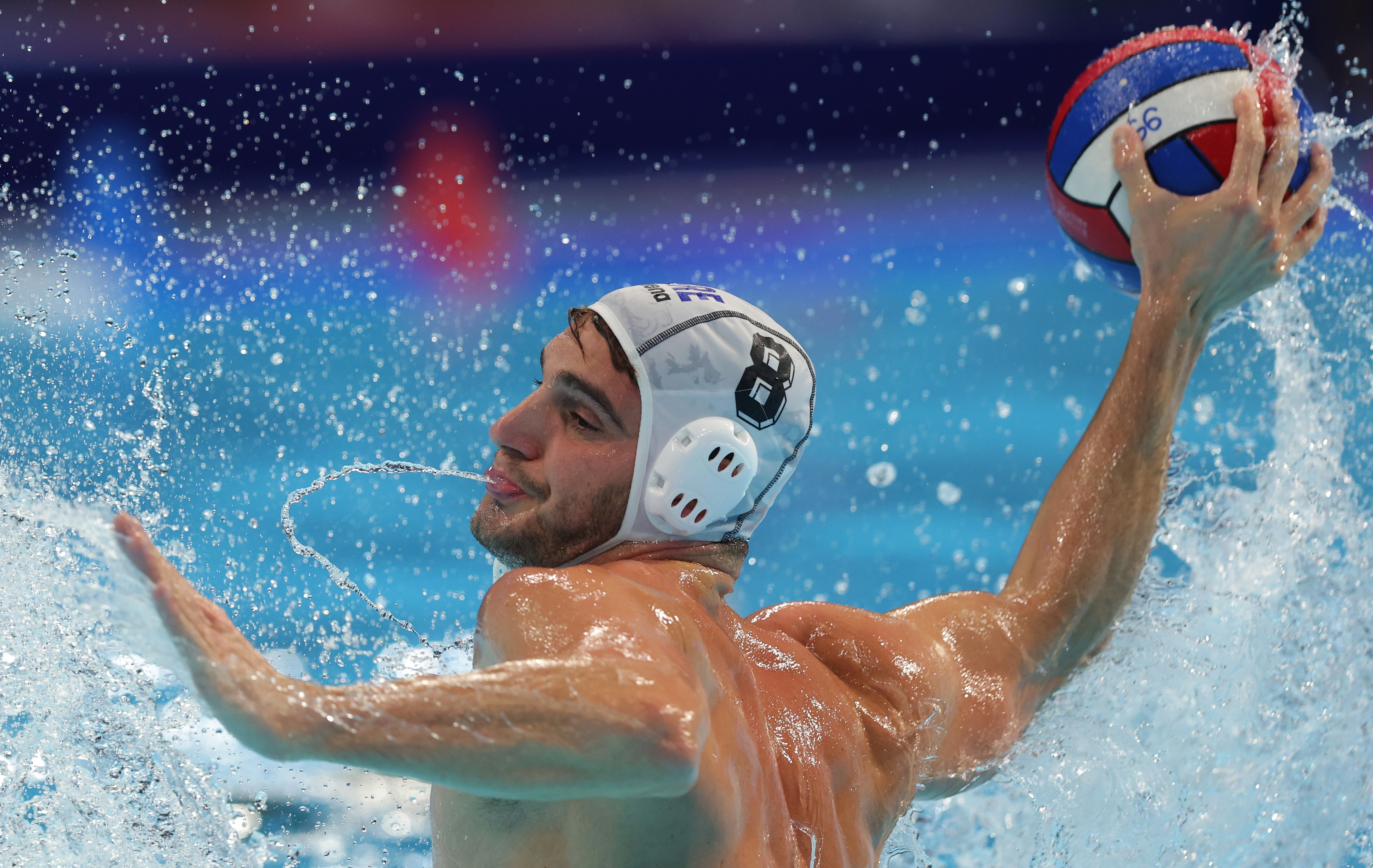 Vaterpolo reprezentacija Grčke demonstrirala je silu protiv Rumunije u poslednjem kolu grupne faze, iako je i pre meča bilo jasno da će Grci igrati protiv Mađarske za mesto u finalu, a Rumuni protiv Crne Gore za sedmo mesto – 18:9 (5:0, 4:1, 4:4, 5:4). Golove za Grčku, postigli su: Genedijunas četiri, Agriropulos tri, Guvecis, Halivolopulos, …